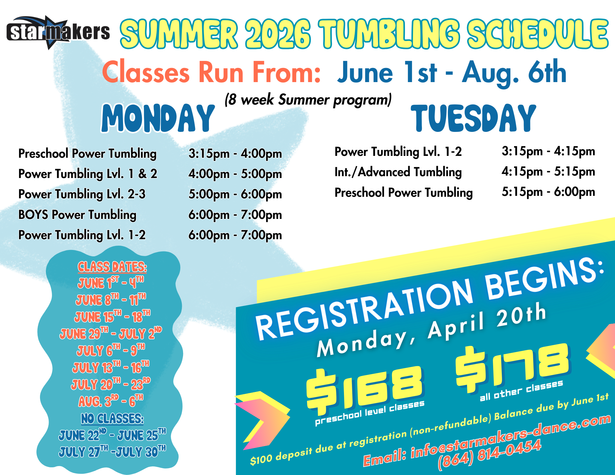 2026 Summer Dance & Tumble Schedule